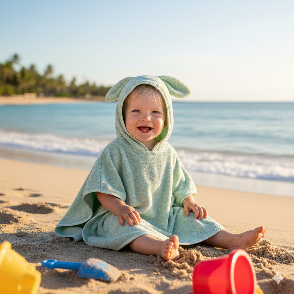 The MOYO baby hooded towel (75x75 cm) made of 100% OEKO-Tex certified cotton offers optimal protection after bathing – whether at home, at the pool, or at the beach. It's extra soft, absorbent, and washable at 60°C. With cute ears and soft colors, it's not only practical but also a magical gift – lovingly packaged and ideal for boys and girls.