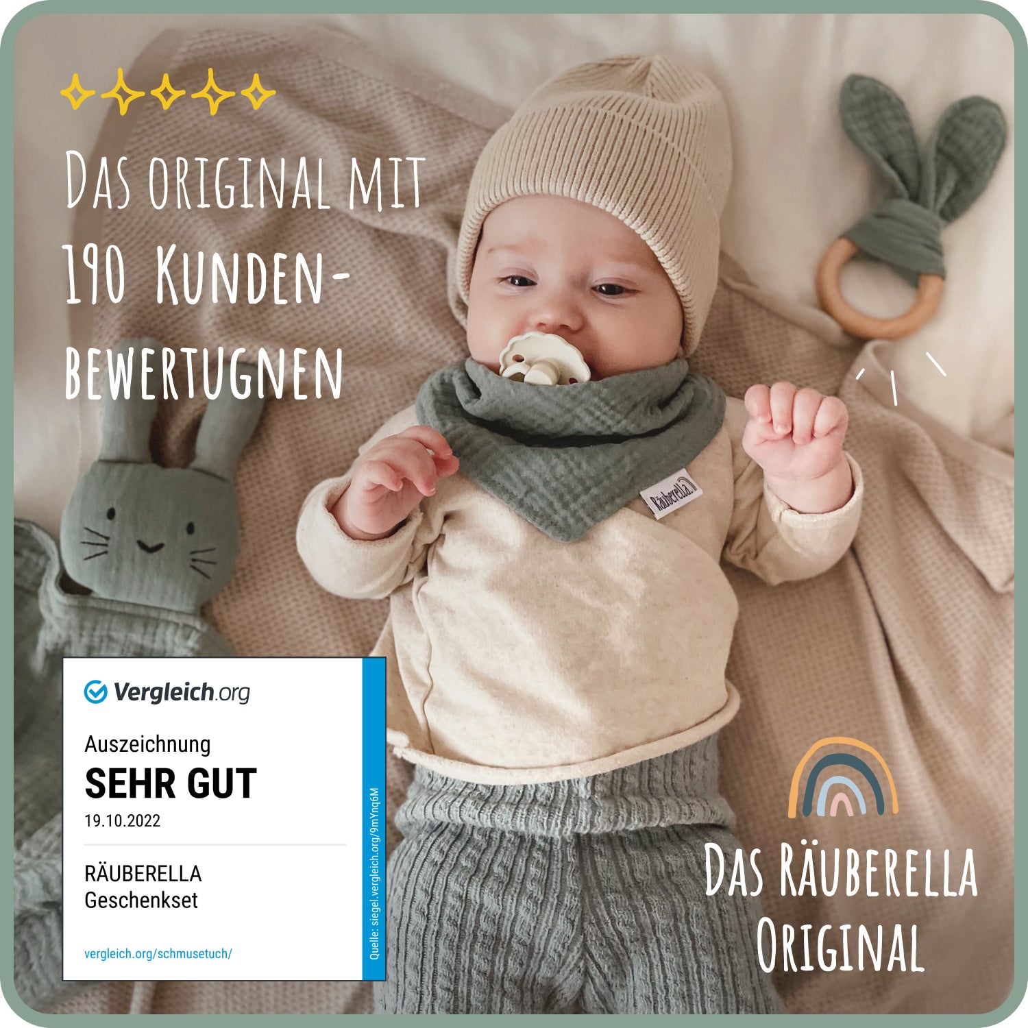 Das exklusive Baby Geschenkset Musselin in Grau-Blau: Stilvolle Erstausstattung von Räuberella und MOYO