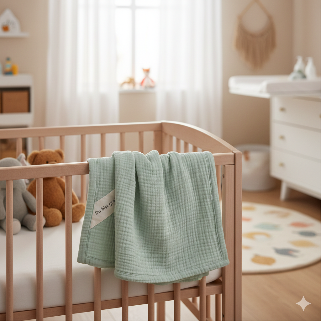 The breathable MOYO baby blanket made of 4-layer muslin is a cozy companion for home and on the go – in summer and winter. Manufactured according to Oeko-Tex Standard 100, plastic-free and climate-neutral, it impresses with its superior quality and soft design in delicate pastel colors. Ideal for strollers, infant carriers, or as a loving gift for a newborn – for security from the very beginning.